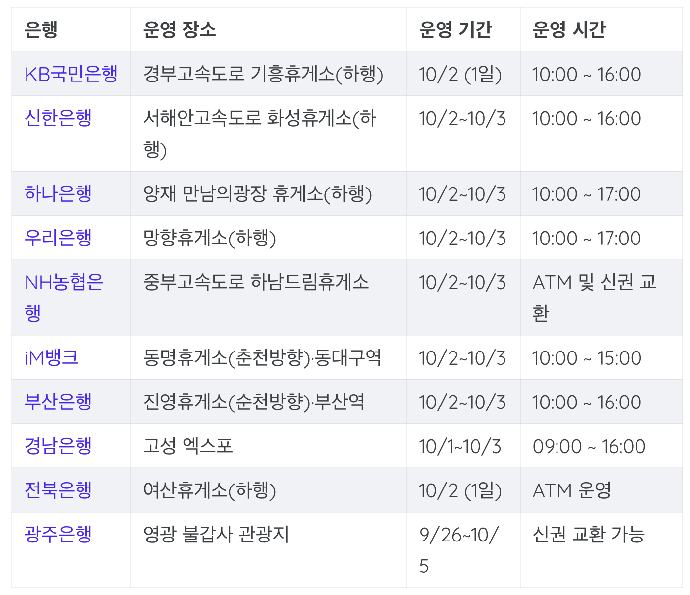 #추석ATM #신권교환 #은행이동점포 #추석환전 #인터넷은행 #금융사기예방 #고속도로휴게소