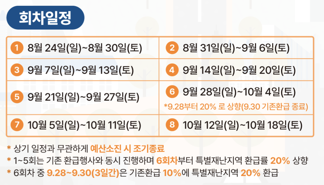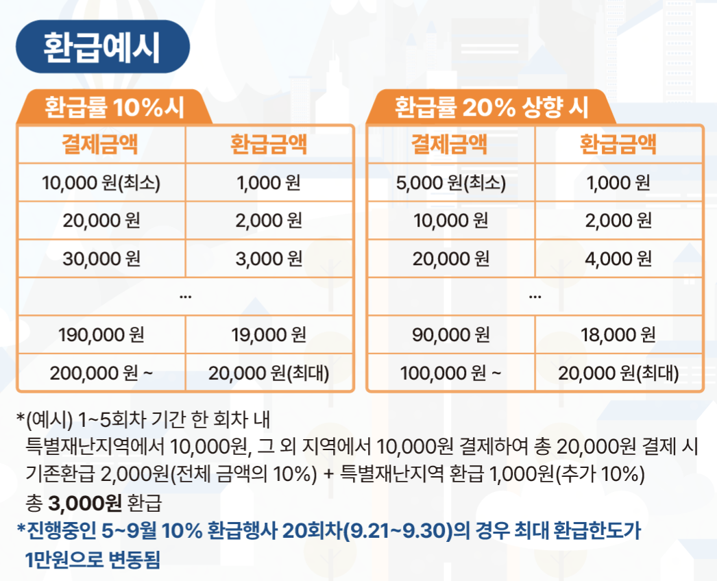 - 기존 환급 10% + 특별재난지역 추가 환급 10%